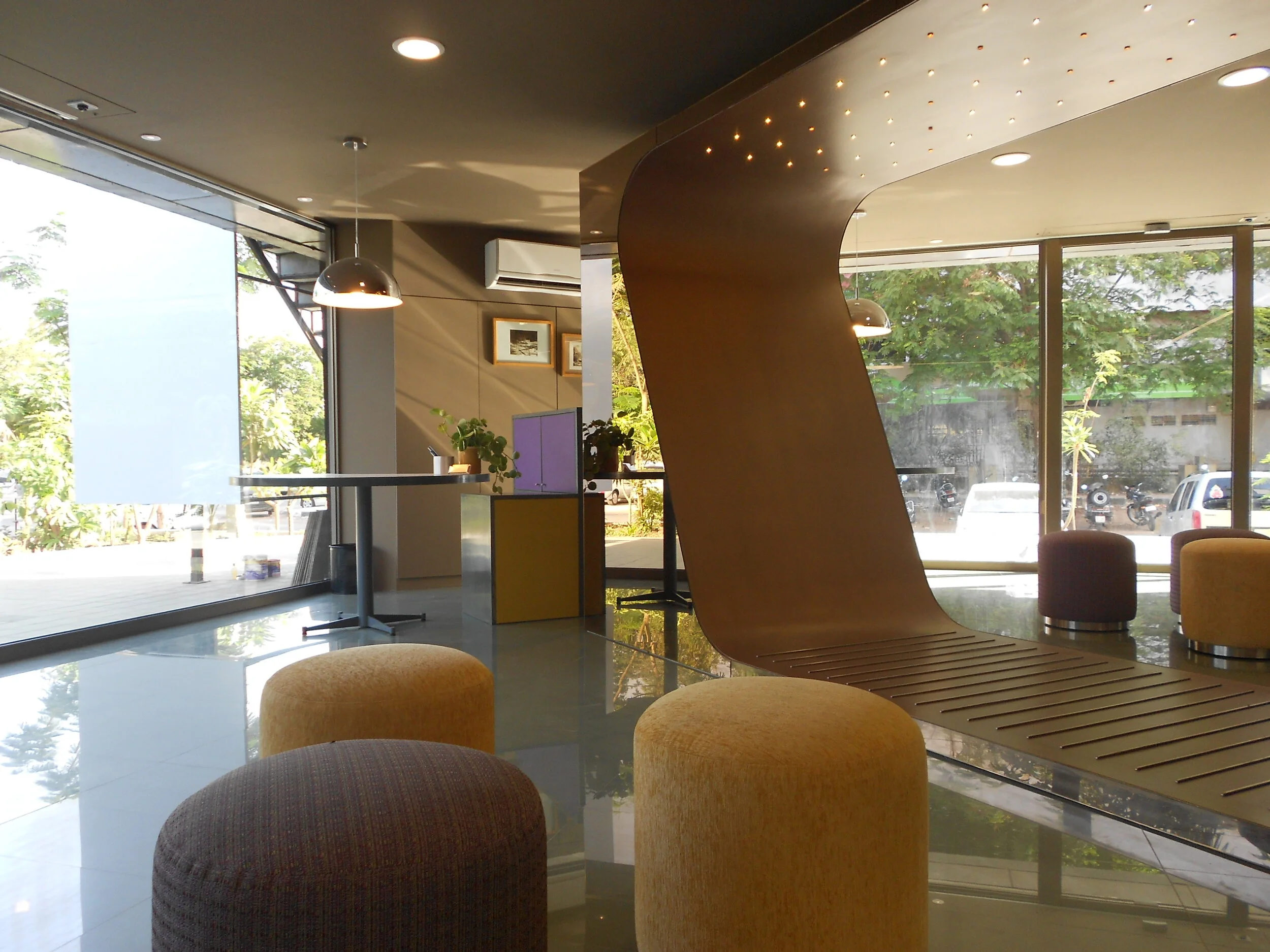 The Government of Gujarat wanted to encourage people to install ‘Rooftop Solar Power Units’, and for this it needed an outlet for it’s communication and advisory services. The client’s requirement was that the showroom should be distinctive and reflect the importance of the Solar Power Project and also be an inviting place for the public.